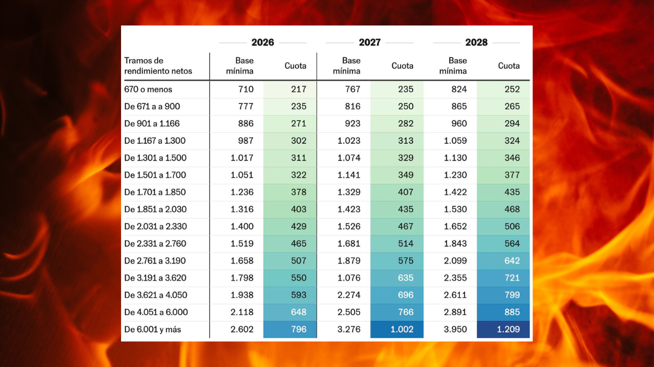 In October 2025, Spain’s Ministry of Inclusión, Seguridad Social y Migraciones officially published a new proposal for freelancer (“autónomo”) social security quotas, outlining base monthly contributions and payment bands for 2026, 2027, and 2028. The data, which is circulating widely on social media, comes directly from tables presented by the government in meetings with worker associations and unions. It specifies 15 income tranches with distinct social security payments, progressively increasing over time.